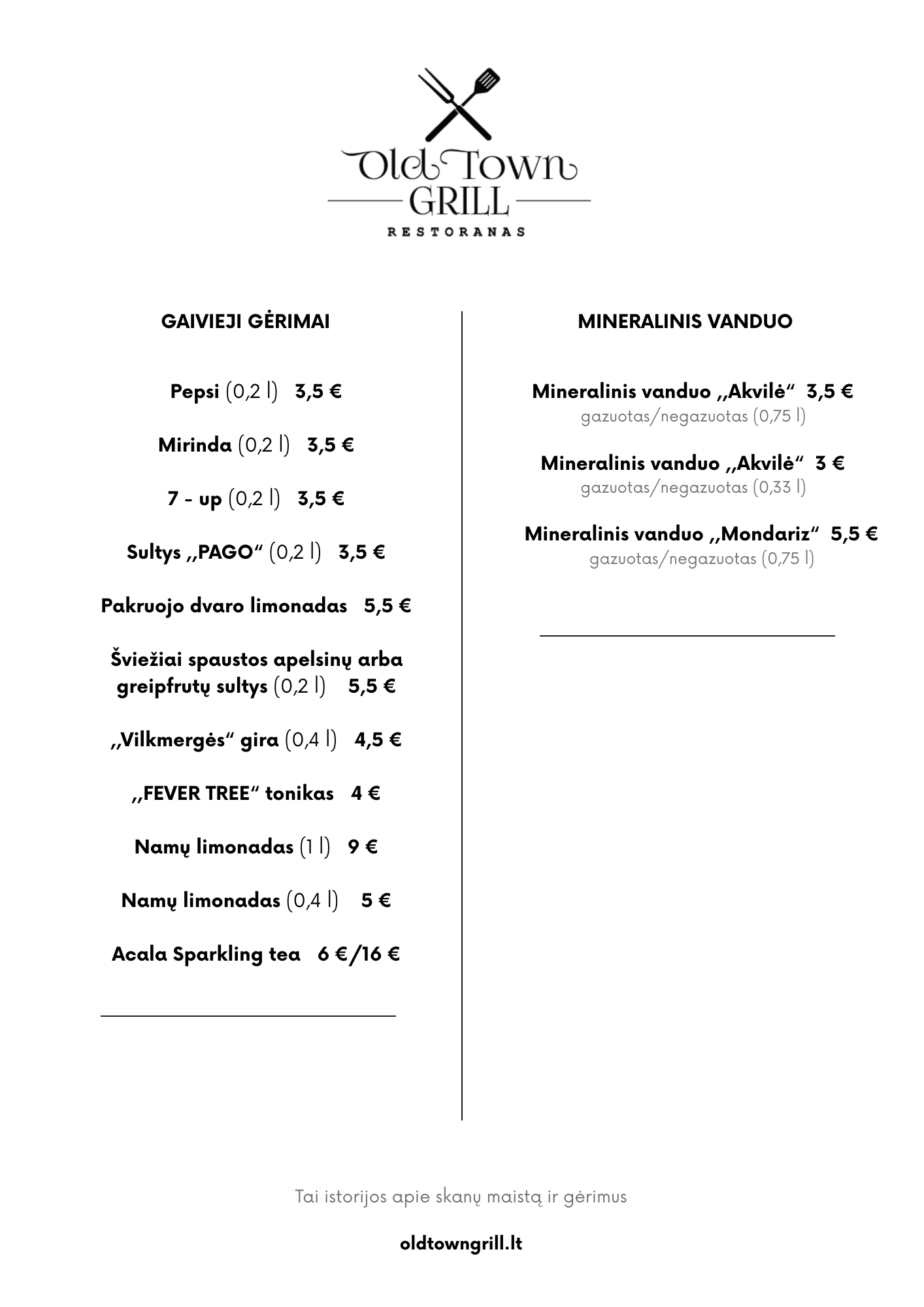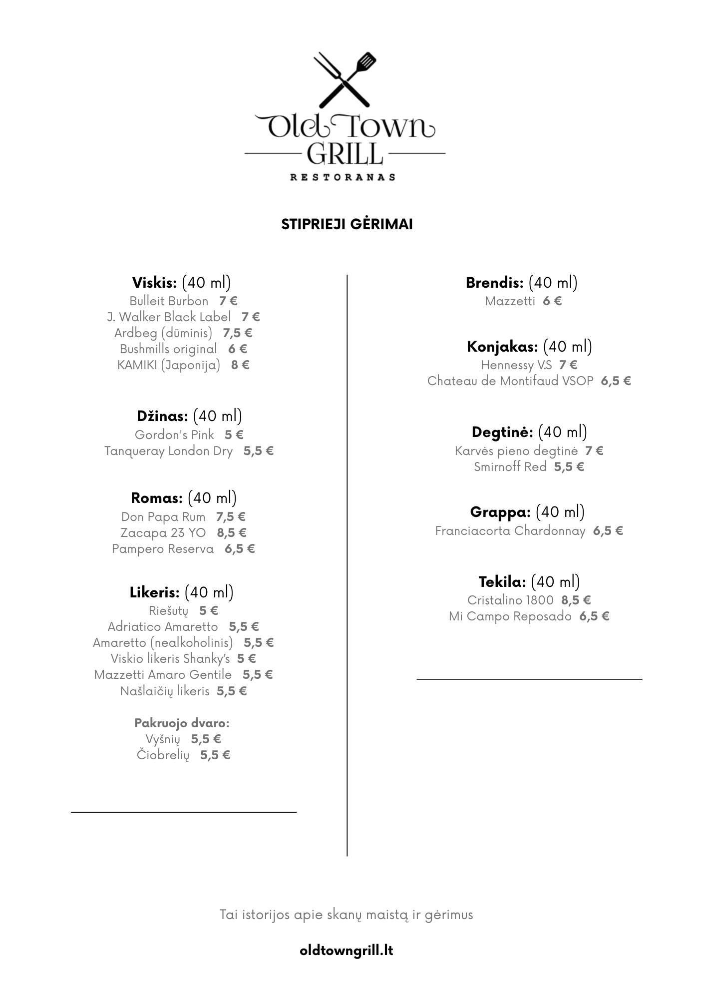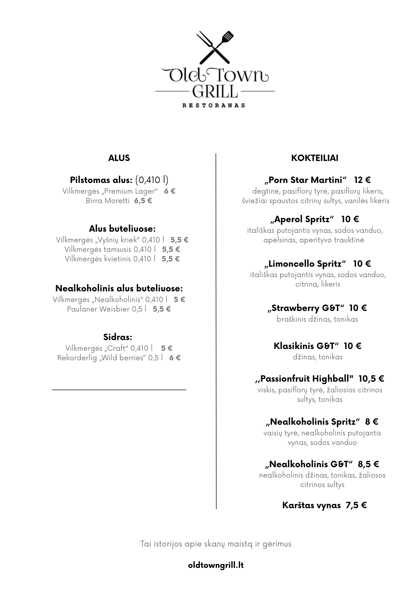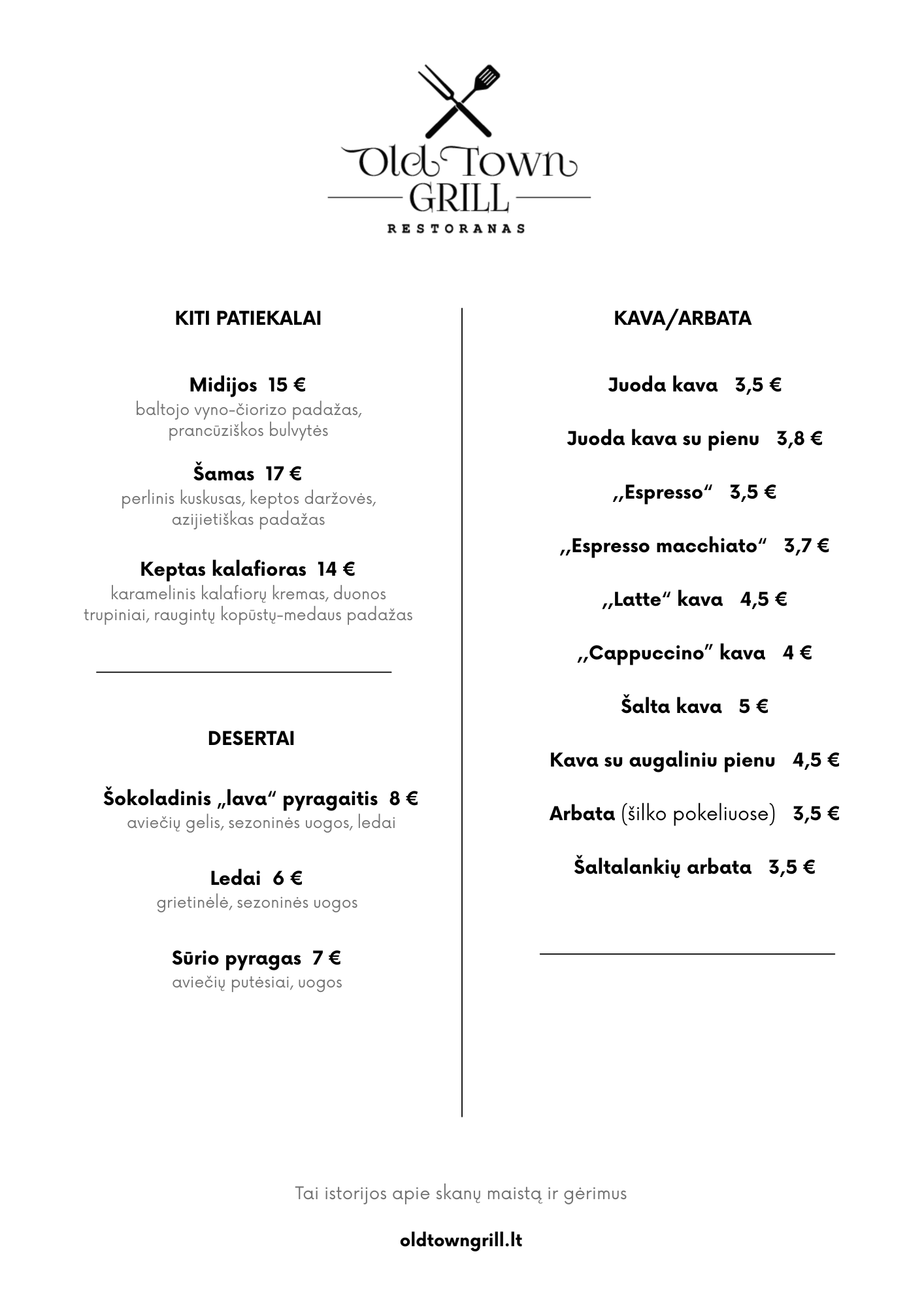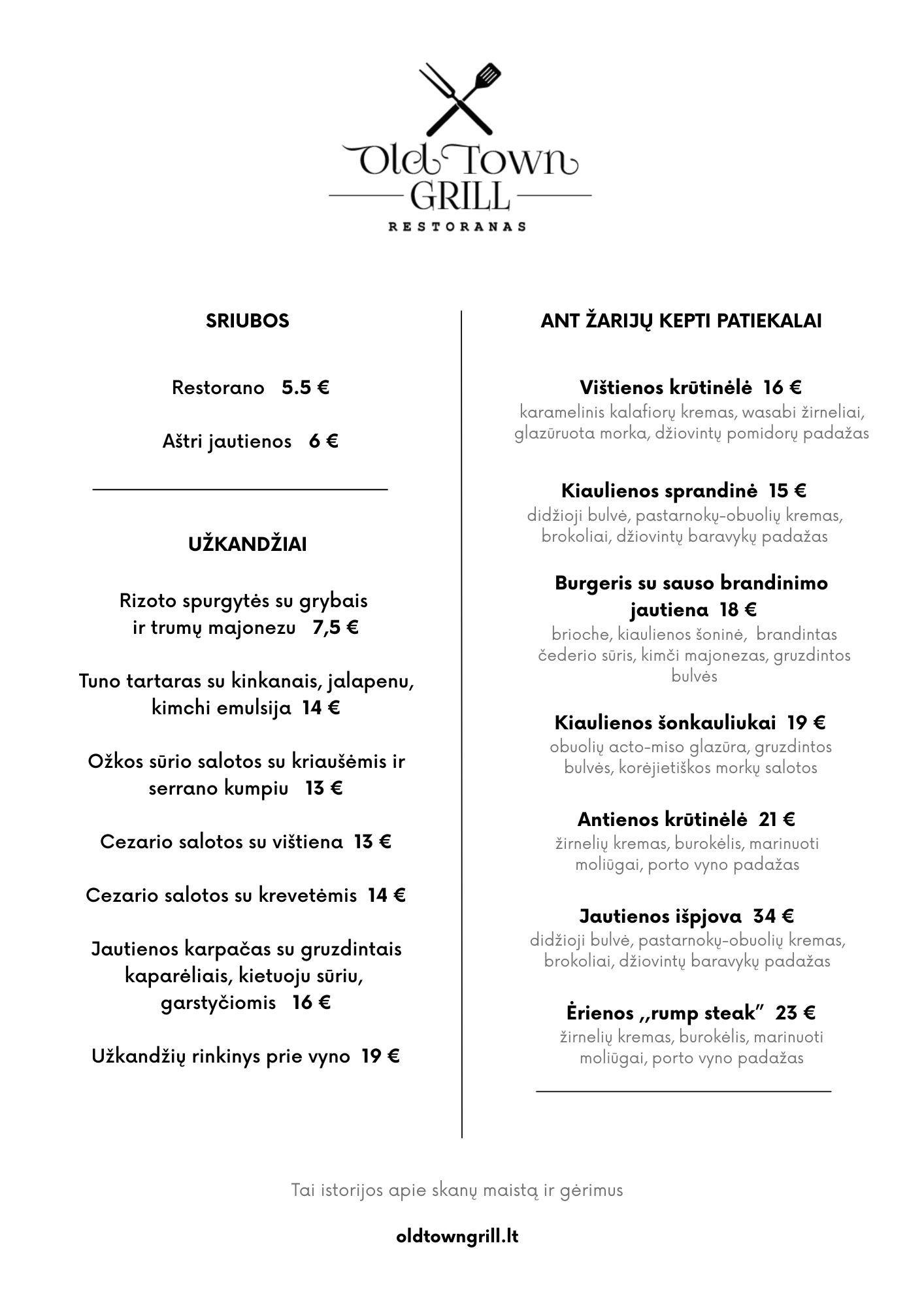 Meniu kurtas iš geriausių vietinių produktų, pritaikytas kiekvieno lankytojo skoniui. Meniu apima grilio šedevrus, jūros gėrybes, vegetariškus pasirinkimus, kiekvienas jų paruoštas su meile ir rūpesčiu.